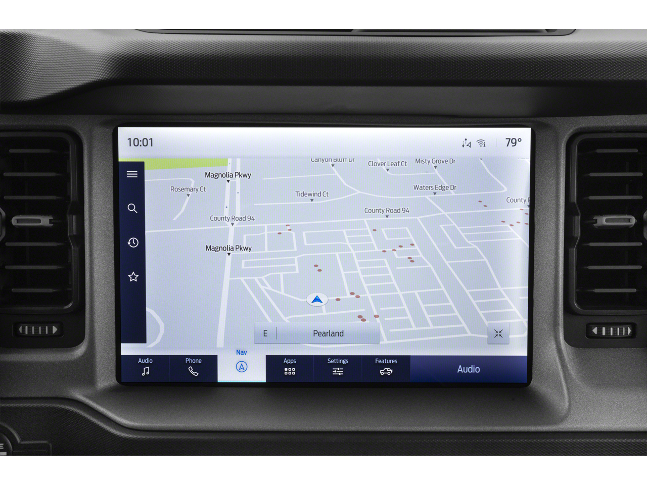 2025 Ford Bronco Outer Banks Azure Gray Metallic Tri-Coat Outer Banks 2.3L EcoBoost I-4 18 Bright Machined Aluminum Wheels, 3.73 Axle Ratio, 360-Degree Camera, Adaptive Cruise Control, Bluetooth®, Connected Navigation, Equipment Group 314A Lux Package, Evasive Steering Assist, Front Center Armrest, Front Parking Sensors, Front reading lights, Front wheel independent suspension, Fully automatic headlights, Heated door mirrors, Heated steering wheel, Information on Demand Panel, Iphone / Droid Compatible, Leather, Leather Shift Knob, Low tire pressure warning, Multi-Function Steering Wheel, Navigation system: Connected Navigation, Occupant sensing airbag, Passenger vanity mirror, Power door mirrors, Power driver seat, Power passenger seat, Power steering, Power windows, Radio: B&O Sound System by Bang & Olufsen, Rearview Camera, Remote keyless entry, Sideview Mirrors, Steering wheel mounted audio controls, SYNC, Tachometer, Tilt steering wheel, Trailer Tow Package (DIO), Universal Garage Door Opener, Variably intermittent wipers.