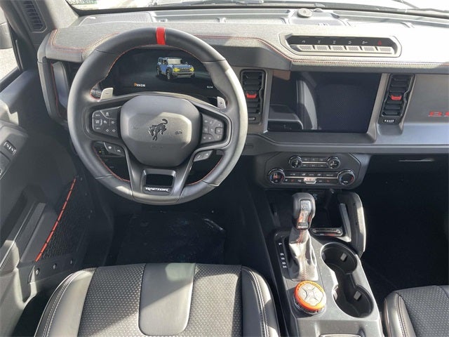 BLIS Blind Spot Monitoring w/ Cross Traffic Alert, TER MGMT W/G.O.A.T. MODES, HOSS 4.0 SUSPENSION, FOX LIVE VALVE DAMPERS, ADVANCED 4X4, HEADLAMPS - AUTO LED, Bronco Raptor, 4D Sport Utility, 3.0L EcoBoost V6, 10-Speed Automatic, 4WD, Marsh Gray, Black Onyx w/Leather-Trimmed/Vinyl Bucket Seats, Auto High-beam Headlights, Automatic temperature control, Connected Navigation, Equipment Group 374A Lux Package, Exterior Parking Camera Rear, Fully automatic headlights, Garage door transmitter, Hard Top Sound Deadening Headliner, Heated front seats, Heated steering wheel, Illuminated entry, Leather-Trimmed/Vinyl Bucket Seats, Navigation system: Connected Navigation, Radio: B&O Sound System by Bang & Olufsen, Remote keyless entry, SiriusXM w/360L, SYNC 4, Wheels: 17 Black High Gloss-Painted Aluminum.