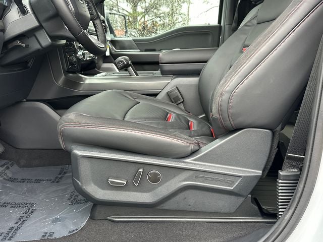 EQUIPMENT GROUP, 4WD, 2nd Row Heated Seats, 4 Pickup Box Tie-Down Plates, 6 Extended Running Boards, 8 Speakers, AM/FM radio: SiriusXM with 360L, Ambient Lighting - Ice Blue Color Only, Automatic temperature control, Bed Utility Package, Black Exterior Badging, Black Grille, Black Taillamp Bezels, Body-Color Front & Rear Bumpers, Body-Color Skull Caps & Door Handles, Console Worksurface, Dark Interior Appliques, Electronic Locking w/3.73 Axle Ratio, Equipment Group 502A High, Front Dual Zone Electronic A/C, Fully automatic headlights, Garage door transmitter, Gray Box Side Decal, GVWR: 7,100 lbs Payload Package, Heads-Up Display, Heated/Cooled Front Seats, Illuminated Driver & Passenger Visors, Integrated Trailer Brake Controller, Lariat Black Appearance Package, LED Box Lighting, Low Tire Pressure Warning, Matte Black Tailgate F-150 Decal, Mobile Office Package, Partitioned Lockable Rear Storage, Power Tailgate, Power-Sliding Rear Window, Pro Access Tailgate, Radio: B&O Unleashed Sound System by Bang & Olufsen, Remote Keyless Entry, Split folding rear seat, SYNC 4 w/Enhanced Voice Recognition, Tough Bed Spray-In Bedliner, Tow/Haul Package, Twin Panel Moonroof, Wheels: 20 Gloss Black Painted Aluminum, Wireless Charging.