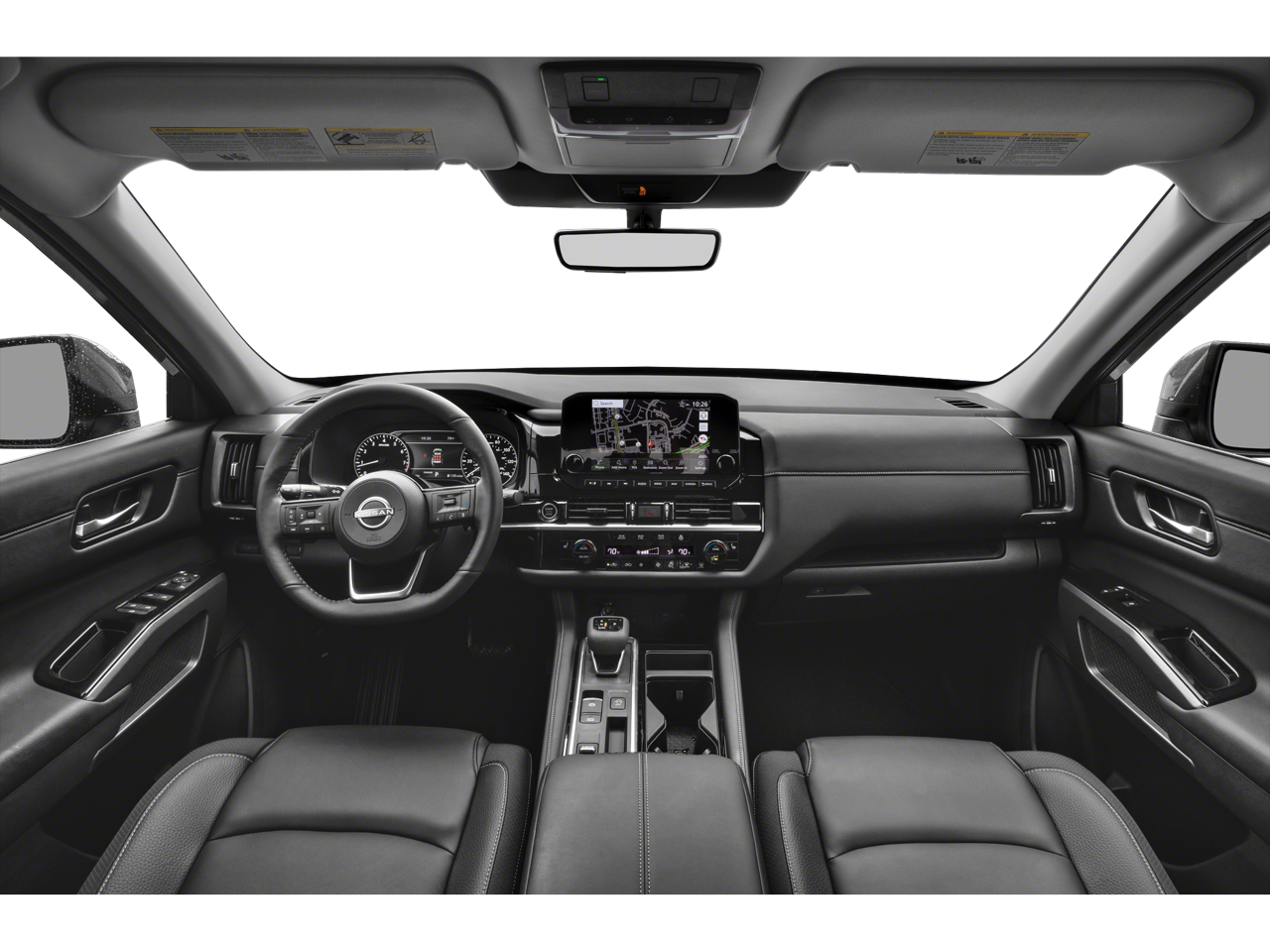 3rd row seats: bench, 4-Wheel Disc Brakes, 6 Speakers, ABS brakes, Air Conditioning, Alloy wheels, AM/FM radio: SiriusXM, Auto High-beam Headlights, Auto-dimming Rear-View mirror, Automatic temperature control, Bench Seat Carpeted Floor Mats (set of 4), Brake assist, Bumpers: body-color, Cross Bars, Delay-off headlights, Driver door bin, Driver vanity mirror, Dual front impact airbags, Dual front side impact airbags, Electronic Stability Control, Emergency communication system, Exterior Parking Camera Rear, Four wheel independent suspension, Front anti-roll bar, Front Bucket Seats, Front Center Armrest, Front dual zone A/C, Front reading lights, Fully automatic headlights, Garage door transmitter: HomeLink, Heated door mirrors, Heated Front Bucket Seats, Heated front seats, Heated steering wheel, Illuminated entry, Knee airbag, Leather steering wheel, Leather-Appointed Seating Surfaces, Low tire pressure warning, Navigation system: NissanConnect with Navigation and Services, NissanConnect featuring Apple CarPlay and Android Auto, NissanConnect with Navigation and Services, Occupant sensing airbag, Outside temperature display, Overhead airbag, Overhead console, Panic alarm, Passenger door bin, Passenger vanity mirror, Power door mirrors, Power driver seat, Power Liftgate, Power passenger seat, Power steering, Power windows, Radio data system, Radio: AM/FM Audio System, Rear air conditioning, Rear anti-roll bar, Rear reading lights, Rear seat center armrest, Rear side impact airbag, Rear window defroster, Rear window wiper, Reclining 3rd row seat, Remote keyless entry, Security system, Speed control, Speed-sensing steering, Split folding rear seat, Spoiler, Steering wheel mounted audio controls, Tachometer, Telescoping steering wheel, Tilt steering wheel, Traction control, Trip computer, Turn signal indicator mirrors, Variably intermittent wipers, and Wheels: 18 x 8J Machined Alloy.
