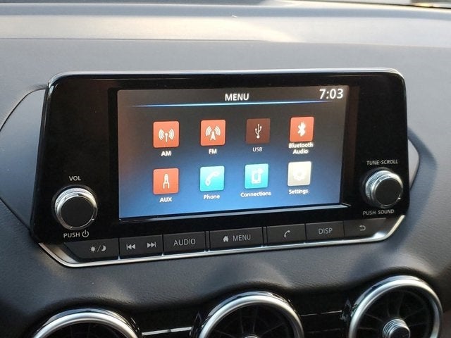 4 Speakers, ABS brakes, Air Conditioning, AM/FM radio, Auto High-beam Headlights, Blind Spot Warning, Body Colored Splash Guards (4-Piece), Brake assist, Bumpers: body-color, Carpeted Floor Mats with Trunk Mat, Cloth Seat Trim, Delay-off headlights, Driver door bin, Driver vanity mirror, Dual front impact airbags, Dual front side impact airbags, Electronic Stability Control, Four wheel independent suspension, Front anti-roll bar, Front Bucket Seats, Front Center Armrest, Front reading lights, Fully automatic headlights, Illuminated entry, Knee airbag, Low tire pressure warning, NissanConnect featuring Apple CarPlay and Android Auto, Occupant sensing airbag, Outside temperature display, Overhead airbag, Overhead console, Panic alarm, Passenger door bin, Passenger vanity mirror, Power door mirrors, Power steering, Power windows, Radio data system, Radio: AM/FM with RDS/MP3/Aux-in, Rear anti-roll bar, Rear Parking Sensors, Rear side impact airbag, Rear window defroster, Remote keyless entry, Speed control, Speed-sensing steering, Split folding rear seat, Steering wheel mounted audio controls, Tachometer, Telescoping steering wheel, Tilt steering wheel, Traction control, Trip computer, Variably intermittent wipers, and Wheels: 16 Steel with Full Covers.