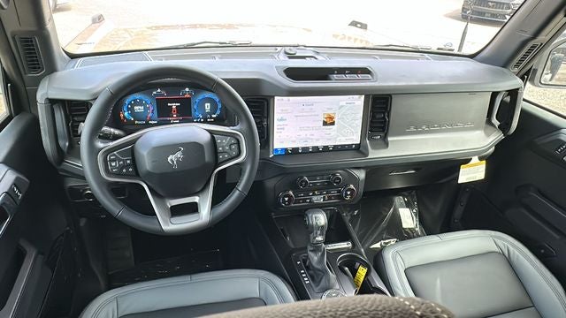 EQUIPMENT GROUP, 2-Door Intelligent Access with Lock/Unlock, 4.46 Axle Ratio, 7 Speakers, AM/FM radio: SiriusXM with 360L, AM/FM Stereo, Ambient Footwell Lighting, BLIS Blind Spot Information System, Carbonized Gray Molded-in-Color Hard Top, Cloth Bucket Seats, Connected Navigation, Driver and Front Passenger Illuminated Sliding Visor Vanity Mirrors, Dual Smart Charging USB Ports, Dual-Zone Electronic Automatic Temperature Control, Equipment Group 222A Mid Package, Exterior Parking Camera Rear, Ford Connectivity Package (1-Year Included), Front Row Heated Seats, Fully automatic headlights, Hard Top Sound Deadening Headliner, Integrated roll-over protection, Lane-Keeping System, Low Tire Pressure Warning, Pro Power Onboard - 400W, Rear Parking Sensors, Rear-View Camera, Rear-Window Defroster and Washer, Remote Keyless Entry, SiriusXM with 360L, Split folding rear seat, SYNC 4, Wheels: 17 Carbonized Gray-Painted Aluminum.