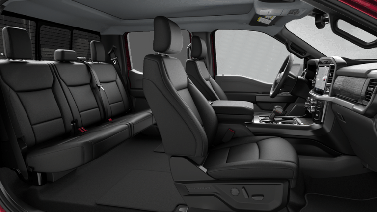 Wireless Charging, Extended Range 36gal Fuel Tank, BLIS Blind Spot Monitoring w/ Cross Traffic Alert, SYNC4 W/EVR & 12 SCREEN, HEADLAMPS - AUTOLAMP, LANE-KEEPING SYSTEM, F-150 XLT, 4D SuperCrew, 5.0L V8, 10-Speed Automatic, 4WD, Ruby Red Metallic, Black w/ActiveX Trimmed Bucket Seats, 360 Degree Camera, 4 Pickup Box Tie-Down Plates, 400W Pro Power Onboard (cab & Bed), 6 Angular Bright Anodized Step Bar, 6 Black Running Boards, Adaptive Cruise Control with Stop and Go, Auto High-beam Headlights, Auto-Dimming Rear-View Mirror, Bed Storage Boxes, Bed Utility Package, Black Exterior Badging, Black Grille, Black Painted Mesh Grille with Chrome Center Bar, Body-Color Door Handles, Body-Color Front and Rear Bumpers, Chrome Door Handles, Chrome Front and Rear Bumpers, Chrome Single-Tip Exhaust, Console Worksurface, Dark Interior Appliques, Dual Exhaust with Black Tips, Dual-Zone Electronic Automatic Temperature Control, Electronic Locking with 3.31 Axle Ratio, Equipment Group 303A High, Ford Co-Pilot360 Assist 2.0, Ford Connectivity Package (1-Year Included), Front Parking Sensors, Fully automatic headlights, Gray Box Side Decal, Heated Front Seats, Illuminated entry, Intelligent Access with Push Button Start, Internet access capable: 5G Modem - Ford Connectivity Package, LED Box Lighting, Mobile Office Package, Partitioned Lockable Rear Storage, Power Glass Heated Sideview Mirrors, Power-Adjustable Pedals, Power-Sliding Rear Window, Radio: B&O Sound System by Bang and Olufsen, Remote Start System with Remote Tailgate Release, SYNC 4 with Enhanced Voice Recognition, Tailgate Step with Work Surface, Towing Technology, Twin Panel Moonroof, Wheels: 20 Gloss Black Painted Aluminum, Wrapped Steering Wheel, XLT Black Appearance Package Plus, XLT Chrome Appearance Package.