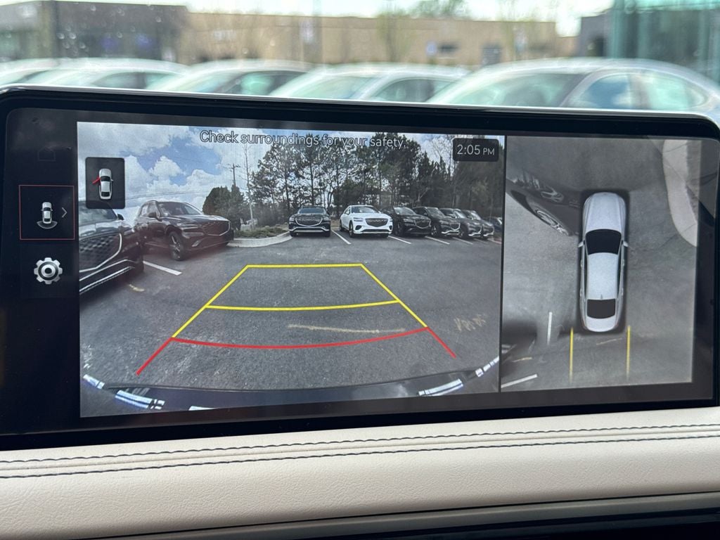 15 Speakers, 4-Wheel Disc Brakes, ABS brakes, Air Conditioning, Alloy wheels, AM/FM radio: SiriusXM, Android Auto & Apple CarPlay, Anti-whiplash front head restraints, Auto High-beam Headlights, Auto-dimming door mirrors, Auto-dimming Rear-View mirror, Automatic temperature control, Brake assist, Bumpers: body-color, Cargo Block, Delay-off headlights, Driver door bin, Driver vanity mirror, Dual front impact airbags, Dual front side impact airbags, Electronic Stability Control, Emergency communication system: Genesis Connected Services, Exterior Parking Camera Rear, First Aid Kit, Four wheel independent suspension, Front anti-roll bar, Front Bucket Seats, Front Center Armrest, Front dual zone A/C, Front reading lights, Fully automatic headlights, Garage door transmitter: HomeLink, Heated and Ventilated Multi-Adjustable Front Bucket Seats, Heated door mirrors, Heated front seats, Heated steering wheel, Illuminated entry, Knee airbag, Leather Seating Surfaces, Leather steering wheel, Low tire pressure warning, Memory seat, Navigation System, Occupant sensing airbag, Option Group 01, Outside temperature display, Overhead airbag, Overhead console, Panic alarm, Passenger door bin, Passenger vanity mirror, Power door mirrors, Power driver seat, Power moonroof, Power passenger seat, Power steering, Power windows, Radio: AM/FM/HD Lexicon Premium Audio System, Rain sensing wipers, Rear anti-roll bar, Rear reading lights, Rear seat center armrest, Rear side impact airbag, Rear window defroster, Remote keyless entry, Reversible Cargo Tray, Roadside Assistance Kit, Security system, Speed control, Speed-Sensitive Wipers, Split folding rear seat, Steering wheel memory, Steering wheel mounted audio controls, Tachometer, Telescoping steering wheel, Traction control, Trip computer, Turn signal indicator mirrors, Variably intermittent wipers, Ventilated front seats, Wheels: 19 x 8.0J Front and 19 x 8.5J Rear Alloy.