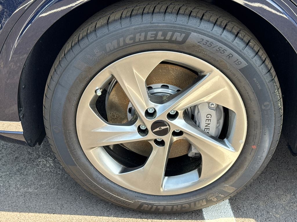 16 Speakers, 4-Wheel Disc Brakes, ABS brakes, Air Conditioning, Alloy wheels, AM/FM radio: SiriusXM, Android Auto & Apple CarPlay, Anti-whiplash front head restraints, Auto High-beam Headlights, Auto-dimming door mirrors, Auto-dimming Rear-View mirror, Automatic temperature control, Brake assist, Bumpers: body-color, Delay-off headlights, Driver door bin, Driver vanity mirror, Dual front impact airbags, Dual front side impact airbags, Electronic Stability Control, Emergency communication system: Genesis Connected Services, Exterior Parking Camera Rear, Four wheel independent suspension, Front anti-roll bar, Front Bucket Seats, Front Center Armrest w/Storage, Front dual zone A/C, Front reading lights, Fully automatic headlights, Garage door transmitter: HomeLink, Heated and Ventilated Front Bucket Seats, Heated door mirrors, Heated front seats, Heated steering wheel, Illuminated entry, Knee airbag, Leather Seating Surfaces, Leather steering wheel, Low tire pressure warning, Memory seat, Navigation System, Occupant sensing airbag, Option Group 01, Outside temperature display, Overhead airbag, Overhead console, Panic alarm, Passenger door bin, Passenger vanity mirror, Power door mirrors, Power driver seat, Power Liftgate, Power moonroof, Power passenger seat, Power steering, Power windows, Radio: 14.5 Navigation System with AM/FM/HD, Rain sensing wipers, Rear anti-roll bar, Rear reading lights, Rear seat center armrest, Rear window defroster, Rear window wiper, Remote keyless entry, Security system, Speed control, Speed-sensing steering, Speed-Sensitive Wipers, Split folding rear seat, Spoiler, Steering wheel memory, Steering wheel mounted audio controls, Tachometer, Telescoping steering wheel, Tilt steering wheel, Traction control, Trip computer, Turn signal indicator mirrors, Up Seatback Cargo Mat, Variably intermittent wipers, Ventilated front seats, Wheels: 19 Light Hyper Silver Alloy.