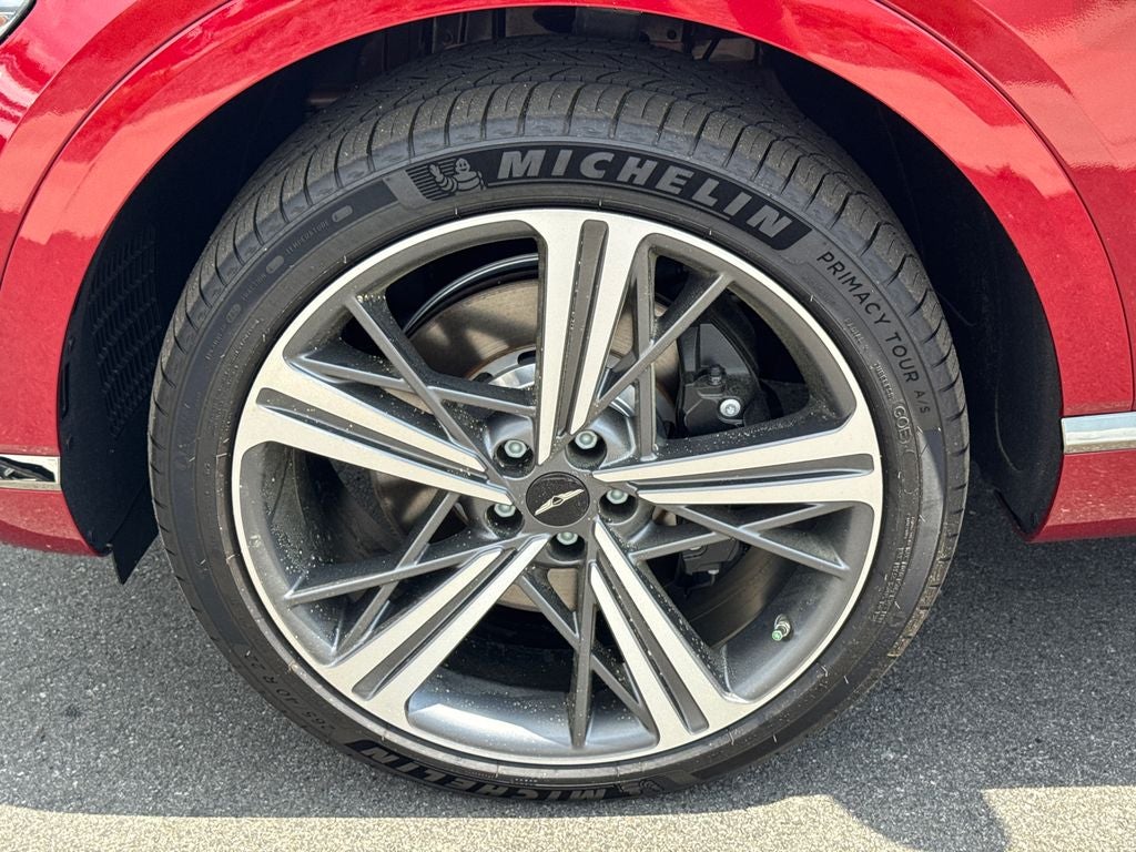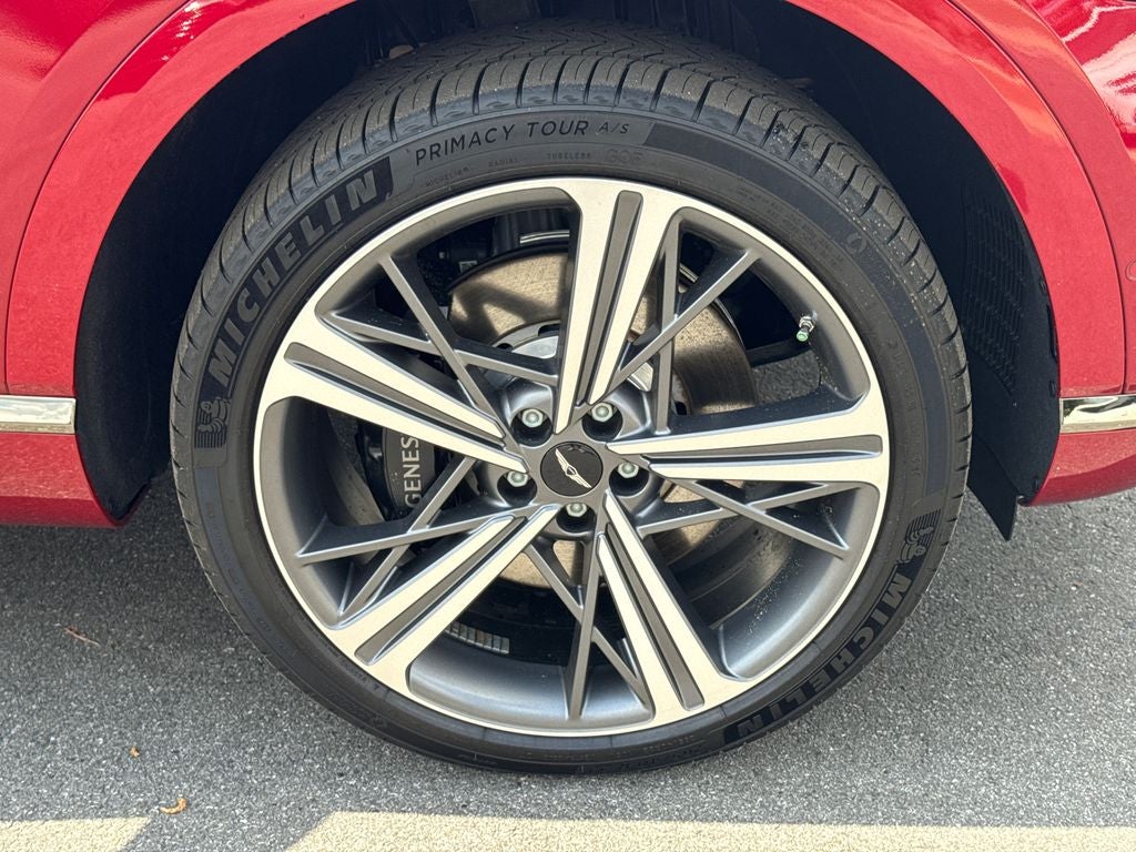 18 Speakers, 4-Wheel Disc Brakes, ABS brakes, Adaptive suspension, Air Conditioning, All Season Fitted Liners, Alloy wheels, AM/FM radio: SiriusXM, Android Auto & Apple CarPlay, Anti-whiplash front head restraints, Auto High-beam Headlights, Auto tilt-away steering wheel, Auto-dimming door mirrors, Auto-dimming Rear-View mirror, Automatic temperature control, Brake assist, Bumpers: body-color, Cargo Mat, Cargo Net, Compass, Delay-off headlights, Driver door bin, Driver vanity mirror, Dual front impact airbags, Dual front side impact airbags, Electronic Stability Control, Emergency communication system: Genesis Connected Services, Exterior Parking Camera Rear, First Aid Kit, Four wheel independent suspension, Front anti-roll bar, Front Bucket Seats, Front Center Armrest, Front dual zone A/C, Front reading lights, Fully automatic headlights, Garage door transmitter: HomeLink, Heads-Up Display, Heated and Ventilated Front Bucket Seats, Heated door mirrors, Heated front seats, Heated rear seats, Heated steering wheel, Illuminated entry, Knee airbag, Low tire pressure warning, Memory seat, Nappa Leather Seating Surfaces, Navigation System, NFC Key Card, Occupant sensing airbag, Option Group 01, Outside temperature display, Overhead airbag, Overhead console, Panic alarm, Passenger door bin, Passenger vanity mirror, Power door mirrors, Power driver seat, Power Liftgate, Power moonroof, Power passenger seat, Power steering, Power windows, Radio data system, Radio: AM/FM/HD Bang & Olufsen Premium Audio, Rain sensing wipers, Rear air conditioning, Rear anti-roll bar, Rear reading lights, Rear seat center armrest, Rear side impact airbag, Rear window defroster, Remote keyless entry, Security system, Speed control, Speed-sensing steering, Speed-Sensitive Wipers, Split folding rear seat, Spoiler, Sport steering wheel, Steering wheel memory, Steering wheel mounted audio controls, Tachometer, Telescoping steering wheel, Tilt steering wheel, Traction control, Trip computer, Turn signal indicator mirrors, Variably intermittent wipers, Ventilated front seats, Ventilated rear seats, Wheels: 22 x 9.5J Dark Gray Matte Sport Alloy.