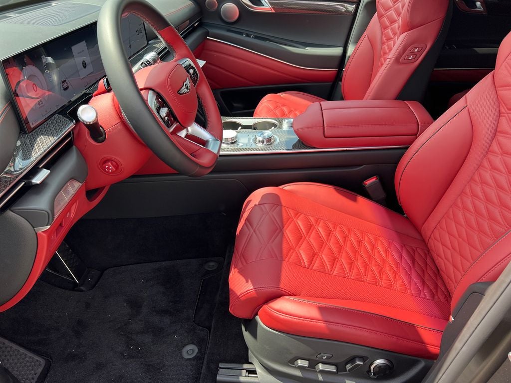 18 Speakers, 4-Wheel Disc Brakes, ABS brakes, Adaptive suspension, Air Conditioning, Alloy wheels, AM/FM radio: SiriusXM, Android Auto & Apple CarPlay, Anti-whiplash front head restraints, Auto High-beam Headlights, Auto tilt-away steering wheel, Auto-dimming door mirrors, Auto-dimming Rear-View mirror, Automatic temperature control, Brake assist, Bumpers: body-color, Cargo Mat, Cargo Net, Compass, Delay-off headlights, Driver door bin, Driver vanity mirror, Dual front impact airbags, Dual front side impact airbags, Electronic Stability Control, Emergency communication system: Genesis Connected Services, Exterior Parking Camera Rear, First Aid Kit, Four wheel independent suspension, Front anti-roll bar, Front Bucket Seats, Front Center Armrest, Front dual zone A/C, Front reading lights, Fully automatic headlights, Garage door transmitter: HomeLink, Heads-Up Display, Heated and Ventilated Front Bucket Seats, Heated door mirrors, Heated front seats, Heated rear seats, Heated steering wheel, Illuminated entry, Knee airbag, Low tire pressure warning, Memory seat, Nappa Leather Seating Surfaces, Navigation System, NFC Key Card, Occupant sensing airbag, Option Group 01, Outside temperature display, Overhead airbag, Overhead console, Panic alarm, Passenger door bin, Passenger vanity mirror, Power door mirrors, Power driver seat, Power Liftgate, Power moonroof, Power passenger seat, Power steering, Power windows, Radio data system, Radio: AM/FM/HD Bang & Olufsen Premium Audio, Rain sensing wipers, Rear air conditioning, Rear anti-roll bar, Rear reading lights, Rear seat center armrest, Rear side impact airbag, Rear window defroster, Remote keyless entry, Roadside Assistance Kit, Security system, Speed control, Speed-sensing steering, Speed-Sensitive Wipers, Split folding rear seat, Spoiler, Sport steering wheel, Steering wheel memory, Steering wheel mounted audio controls, Tachometer, Telescoping steering wheel, Tilt steering wheel, Traction control, Trip computer, Turn signal indicator mirrors, Variably intermittent wipers, Ventilated front seats, Ventilated rear seats, Wheels: 22 x 9.5J Dark Gray Matte Sport Alloy.