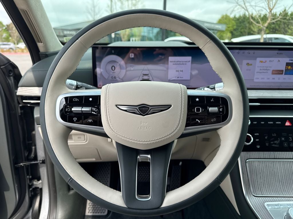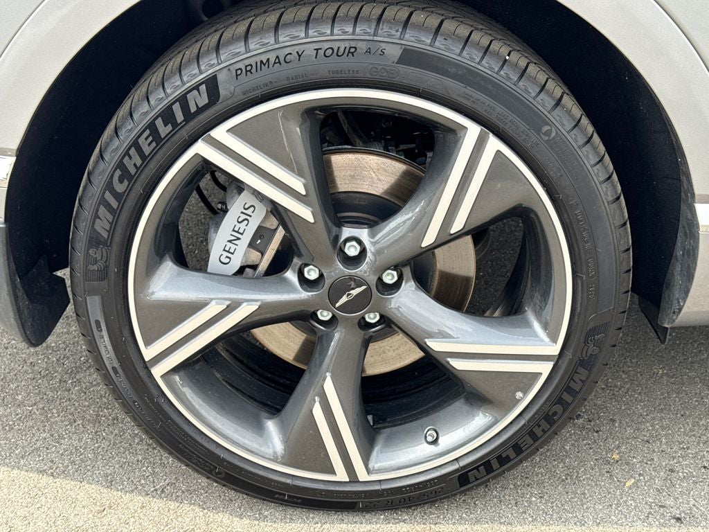18 Speakers, 3rd row seats: split-bench, 4-Wheel Disc Brakes, ABS brakes, Adaptive suspension, Air Conditioning, Alloy wheels, AM/FM radio: SiriusXM, Anti-whiplash front head restraints, Auto High-beam Headlights, Auto tilt-away steering wheel, Auto-dimming door mirrors, Auto-dimming Rear-View mirror, Automatic temperature control, Brake assist, Bumpers: body-color, Compass, Delay-off headlights, Driver door bin, Driver vanity mirror, Dual front impact airbags, Dual front side impact airbags, Electronic Stability Control, Emergency communication system: Genesis Connected Services, Exterior Parking Camera Rear, First Aid Kit, Four wheel independent suspension, Front and Rear Mudguards, Front anti-roll bar, Front Bucket Seats, Front Center Armrest, Front dual zone A/C, Front reading lights, Fully automatic headlights, Garage door transmitter: HomeLink, Genuine wood console insert, Genuine wood dashboard insert, Genuine wood door panel insert, Heads-Up Display, Heated and Ventilated Front Bucket Seats, Heated door mirrors, Heated front seats, Heated rear seats, Heated steering wheel, Illuminated entry, Knee airbag, Leather steering wheel, Low tire pressure warning, Memory seat, Nappa Leather Seating Surfaces, Navigation System, NFC Key Card, Occupant sensing airbag, Option Group 01, Outside temperature display, Overhead airbag, Overhead console, Panic alarm, Passenger door bin, Passenger vanity mirror, Power door mirrors, Power driver seat, Power Liftgate, Power moonroof, Power passenger seat, Power steering, Power windows, Radio data system, Radio: AM/FM/HD Bose Premium Sound System, Rain sensing wipers, Rear air conditioning, Rear anti-roll bar, Rear reading lights, Rear seat center armrest, Rear side impact airbag, Rear window defroster, Rear window wiper, Reclining 3rd row seat, Remote keyless entry, Roadside Assistance Kit, Security system, Speed control, Speed-sensing steering, Speed-Sensitive Wipers, Split folding rear seat, Spoiler, Steering wheel memory, Steering wheel mounted audio controls, Tachometer, Telescoping steering wheel, Tilt steering wheel, Traction control, Trip computer, Turn signal indicator mirrors, Variably intermittent wipers, Ventilated front seats, Ventilated rear seats, Wheels: 22 x 9.5J Dark Gray Matte Alloy.