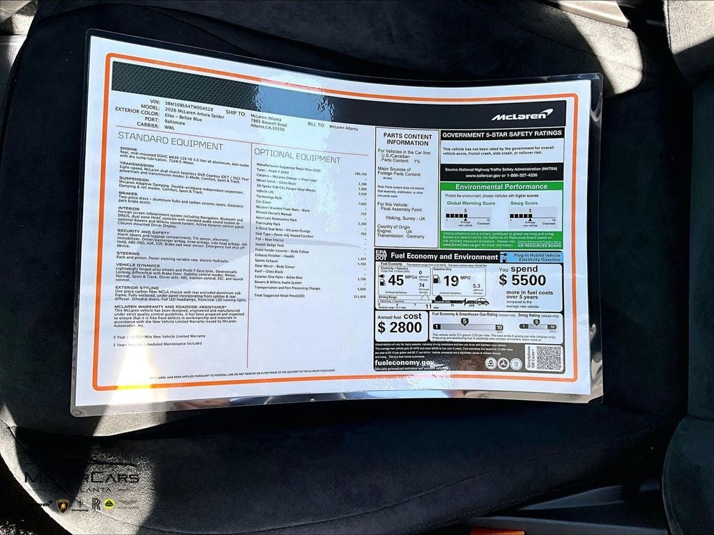 McLaren Atlanta is excited to offer this 2026 McLaren Artura Spider as part of our new vehicle inventory. This example is finished in Belize Blue exterior over Carbon & Jet Black Alcantara w/ Leather interior.