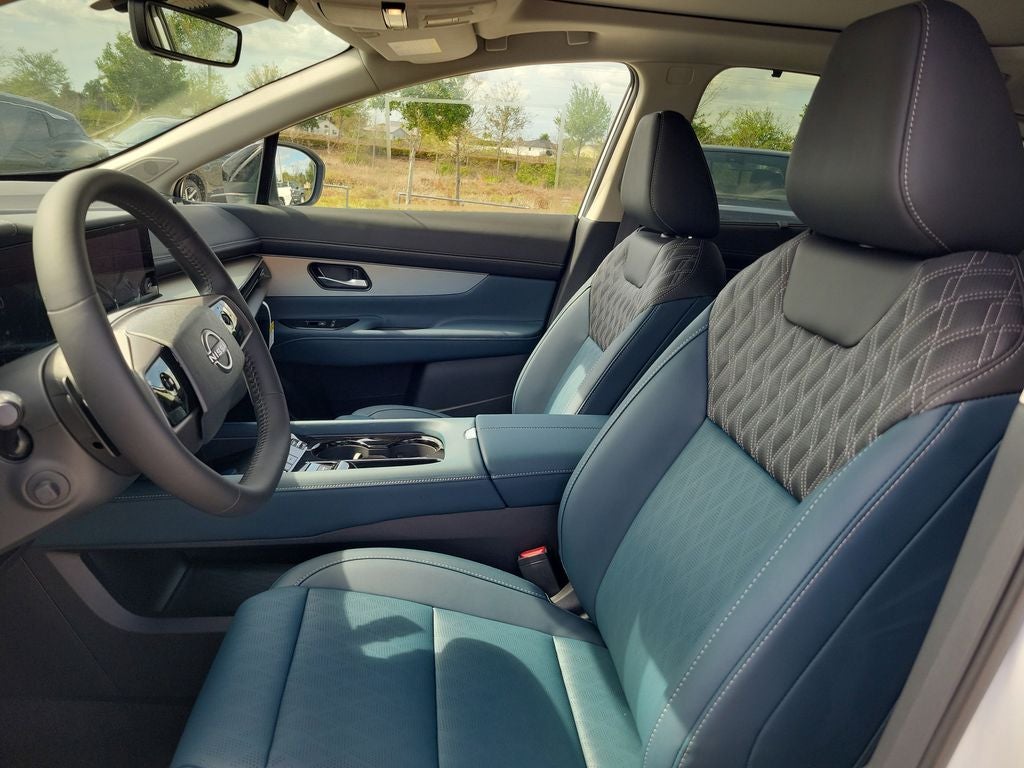 Cargo Package (3-Position Cargo Area Protector, Cargo Net, First Aid Kit, and Retractable Cargo Cover), 10 Speakers, 2-Tone with Premium Paint, 21 Alloy Wheels, 4-Wheel Disc Brakes, ABS brakes, Air Conditioning, Alloy wheels, AM/FM radio: SiriusXM w/360L, Auto High-beam Headlights, Auto tilt-away steering wheel, Auto-dimming Rear-View mirror, Automatic temperature control, Brake assist, Bumpers: body-color, Carpeted Floor and Cargo Mats, Child-Seat-Sensing Airbag, Compass, Delay-off headlights, Driver door bin, Driver vanity mirror, Dual front impact airbags, Dual front side impact airbags, Electronic Stability Control, Emergency communication system: NissanConnect Services, Four wheel independent suspension, Front anti-roll bar, Front Bucket Seats, Front Center Armrest, Front dual zone A/C, Front reading lights, Fully automatic headlights, Garage door transmitter: HomeLink, Heads-Up Display, Heated and Ventilated Front Bucket Seats with Massage, Heated door mirrors, Heated front seats, Heated rear seats, Heated steering wheel, Illuminated entry, Illuminated Kick Plates, Knee airbag, Low tire pressure warning, Memory seat, Navigation system: NissanConnect with Navigation and Services, Occupant sensing airbag, Outside temperature display, Overhead airbag, Overhead console, Painted Splash Guards, Panic alarm, Passenger door bin, Passenger vanity mirror, Power door mirrors, Power driver seat, Power Liftgate, Power moonroof: Panoramic, Power passenger seat, Power steering, Power windows, Quilted Semi-Aniline Leather-Appointed Seat Trim, Radio data system, Radio: NissanConnect with 4 Hybrid, Rain sensing wipers, Rear anti-roll bar, Rear reading lights, Rear seat center armrest, Rear side impact airbag, Rear window defroster, Rear window wiper, Remote keyless entry, Security system, Speed control, Speed-Sensitive Wipers, Split folding rear seat, Spoiler, Steering wheel memory, Steering wheel mounted audio controls, Tachometer, Telescoping steering wheel, Tilt steering wheel, Traction control, Trip computer, Turn signal indicator mirrors, Variably intermittent wipers, Ventilated front seats, and Wireless Apple CarPlay/Wireless Android Auto.