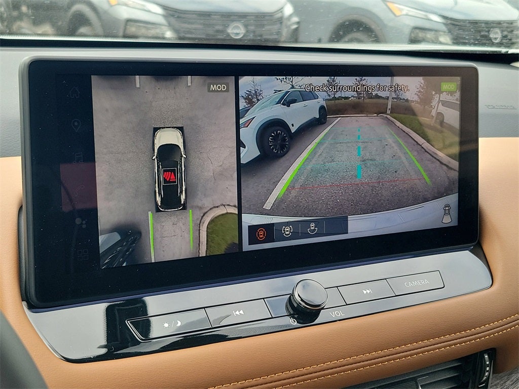 Platinum Premium Package (Head-Up Display, Heated Rear Seats, Motion-Activated Power Liftgate, and Tri-Zone Automatic Temperature Control), 10 Speakers, 4-Wheel Disc Brakes, ABS brakes, Air Conditioning, Alloy wheels, AM/FM radio: SiriusXM w/360L, Auto High-beam Headlights, Auto-dimming Rear-View mirror, Automatic temperature control, Black Splash Guards (set of 4), Bose Premium Audio System, Brake assist, Bumpers: body-color, Chrome Rear Bumper Protector, Delay-off headlights, Driver door bin, Driver vanity mirror, Dual front impact airbags, Dual front side impact airbags, Electronic Stability Control, Emergency communication system: NissanConnect Services, First Aid Kit, Floor Mats with 2-Piece Cargo Area Protector, Four wheel independent suspension, Front anti-roll bar, Front Bucket Seats, Front Center Armrest, Front dual zone A/C, Front reading lights, Fully automatic headlights, Garage door transmitter: myQ Connected Garage, Heads-Up Display, Heated door mirrors, Heated Front Bucket Seats, Heated front seats, Heated steering wheel, Illuminated entry, Knee airbag, Low tire pressure warning, Memory seat, Navigation system: Google Maps, Occupant sensing airbag, Outside temperature display, Overhead airbag, Overhead console, Panic alarm, Passenger door bin, Passenger vanity mirror, Power door mirrors, Power driver seat, Power Liftgate, Power moonroof, Power passenger seat, Power steering, Power windows, Premium Paint, Quilted Semi-Aniline Leather-Appointed Seat Trim, Radio data system, Radio: AM/FM NissanConnect with Navigation, Rear anti-roll bar, Rear reading lights, Rear seat center armrest, Rear side impact airbag, Rear window defroster, Rear window wiper, Remote keyless entry, Roof Rail Cross Bars, Security system, Speed control, Speed-sensing steering, Speed-Sensitive Wipers, Split folding rear seat, Spoiler, Steering wheel mounted audio controls, Tachometer, Telescoping steering wheel, Tilt steering wheel, Traction control, Trip computer, Turn signal indicator mirrors, Variably intermittent wipers, Wheels: 19 Unique Dark Painted Aluminum Alloy, and Wireless Apple CarPlay/Wireless Android Auto.