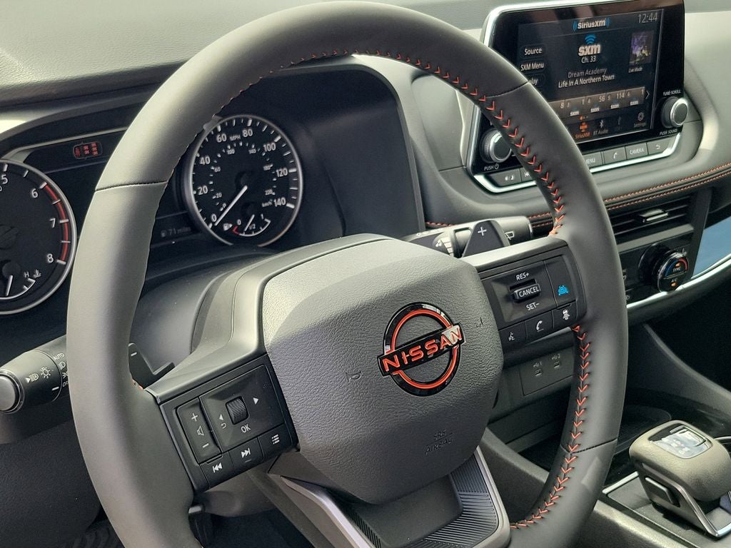 4-Wheel Disc Brakes, 6 Speakers, ABS brakes, Air Conditioning, Alloy wheels, AM/FM radio, Apple CarPlay/Android Auto, Auto High-beam Headlights, Automatic temperature control, Black Splash Guards (set of 4), Brake assist, Delay-off headlights, Driver door bin, Driver vanity mirror, Dual front impact airbags, Dual front side impact airbags, Electronic Stability Control, Emergency communication system: NissanConnect Services, Four wheel independent suspension, Front anti-roll bar, Front Bucket Seats, Front Center Armrest, Front dual zone A/C, Front reading lights, Fully automatic headlights, Heated door mirrors, Heated Front Bucket Seats, Heated front seats, Illuminated entry, Knee airbag, Leatherette and Ballistic Nylon Seating, Low tire pressure warning, Occupant sensing airbag, Outside temperature display, Overhead airbag, Overhead console, Panic alarm, Passenger door bin, Passenger vanity mirror, Power door mirrors, Power driver seat, Power Liftgate, Power steering, Power windows, Premium Paint, Radio data system, Radio: AM/FM NissanConnect, Rear anti-roll bar, Rear Parking Sensors, Rear seat center armrest, Rear side impact airbag, Rear window defroster, Rear window wiper, Remote keyless entry, Roof rack, Speed control, Speed-sensing steering, Speed-Sensitive Wipers, Split folding rear seat, Spoiler, Steering wheel mounted audio controls, Tachometer, Telescoping steering wheel, Tilt steering wheel, Traction control, Trip computer, Variably intermittent wipers, and Wheels: 17 Dark Painted Alloy.