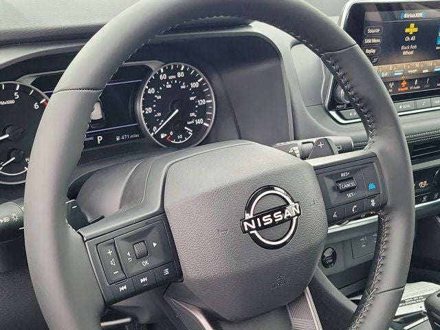 4-Wheel Disc Brakes, 6 Speakers, ABS brakes, Air Conditioning, Alloy wheels, AM/FM radio, Apple CarPlay/Android Auto, Auto High-beam Headlights, Automatic temperature control, Black Splash Guards (set of 4), Brake assist, Bumpers: body-color, Delay-off headlights, Driver door bin, Driver vanity mirror, Dual front impact airbags, Dual front side impact airbags, Electronic Stability Control, Emergency communication system: NissanConnect Services, First Aid Kit, Floor Mats with 1-Piece Cargo Area Protector, Four wheel independent suspension, Front anti-roll bar, Front Bucket Seats, Front Center Armrest, Front dual zone A/C, Front reading lights, Fully automatic headlights, Heated door mirrors, Illuminated entry, Knee airbag, Low tire pressure warning, Occupant sensing airbag, Outside temperature display, Overhead airbag, Overhead console, Panic alarm, Passenger door bin, Passenger vanity mirror, Power door mirrors, Power driver seat, Power Liftgate, Power steering, Power windows, Prima-Tex Leatherette Seat Trim, Radio data system, Radio: AM/FM NissanConnect, Rear anti-roll bar, Rear seat center armrest, Rear side impact airbag, Rear window defroster, Rear window wiper, Remote keyless entry, Speed control, Speed-sensing steering, Speed-Sensitive Wipers, Split folding rear seat, Spoiler, Steering wheel mounted audio controls, Tachometer, Telescoping steering wheel, Tilt steering wheel, Traction control, Trip computer, and Variably intermittent wipers.