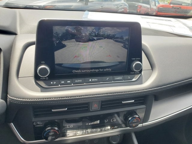 4-Wheel Disc Brakes, 6 Speakers, ABS brakes, Air Conditioning, Alloy wheels, AM/FM radio: Sirius, Apple CarPlay/Android Auto, Auto High-beam Headlights, Automatic temperature control, Black Splash Guards (Set of 4) (B92), Brake assist, Bumpers: body-color, Chrome Rear Bumper Protector, Delay-off headlights, Driver door bin, Driver vanity mirror, Dual front impact airbags, Dual front side impact airbags, Electronic Stability Control, Emergency communication system: NissanConnect Services, First Aid Kit, Floor Mats w/1-Piece Cargo Area Protector, Four wheel independent suspension, Front anti-roll bar, Front Bucket Seats, Front Center Armrest, Front dual zone A/C, Front reading lights, Fully automatic headlights, Heated door mirrors, Illuminated entry, Knee airbag, Low tire pressure warning, Occupant sensing airbag, Outside temperature display, Overhead airbag, Overhead console, Panic alarm, Passenger door bin, Passenger vanity mirror, Power door mirrors, Power driver seat, Power Liftgate, Power steering, Power windows, Prima-Tex Leatherette Seat Trim, Radio data system, Radio: AM/FM NissanConnect, Rear anti-roll bar, Rear seat center armrest, Rear side impact airbag, Rear window defroster, Rear window wiper, Remote keyless entry, Speed control, Speed-sensing steering, Speed-Sensitive Wipers, Split folding rear seat, Spoiler, Steering wheel mounted audio controls, Tachometer, Telescoping steering wheel, Tilt steering wheel, Traction control, Trip computer, and Variably intermittent wipers.