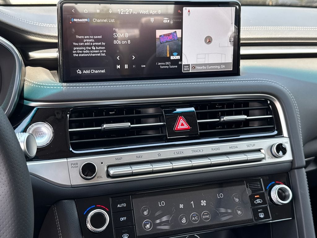 15 Speakers, 4-Wheel Disc Brakes, ABS brakes, Air Conditioning, Alloy wheels, AM/FM radio: SiriusXM, Android Auto & Apple CarPlay, Anti-whiplash front head restraints, Auto High-beam Headlights, Auto-dimming door mirrors, Auto-dimming Rear-View mirror, Automatic temperature control, Brake assist, Bumpers: body-color, Cargo Block, Delay-off headlights, Driver door bin, Driver vanity mirror, Dual front impact airbags, Dual front side impact airbags, Electronic Stability Control, Emergency communication system: Genesis Connected Services, Exterior Parking Camera Rear, First Aid Kit, Four wheel independent suspension, Front anti-roll bar, Front Bucket Seats, Front Center Armrest, Front dual zone A/C, Front reading lights, Fully automatic headlights, Garage door transmitter: HomeLink, Heated and Ventilated Multi-Adjustable Front Bucket Seats, Heated door mirrors, Heated front seats, Heated steering wheel, Illuminated entry, Knee airbag, Leather Seating Surfaces, Leather steering wheel, Low tire pressure warning, Memory seat, Mudguards, Navigation System, Occupant sensing airbag, Option Group 01, Outside temperature display, Overhead airbag, Overhead console, Panic alarm, Passenger door bin, Passenger vanity mirror, Power door mirrors, Power driver seat, Power moonroof, Power passenger seat, Power steering, Power windows, Radio: AM/FM/HD Lexicon Premium Audio System, Rain sensing wipers, Rear anti-roll bar, Rear reading lights, Rear seat center armrest, Rear side impact airbag, Rear window defroster, Remote keyless entry, Reversible Cargo Tray, Security system, Speed control, Speed-Sensitive Wipers, Split folding rear seat, Steering wheel memory, Steering wheel mounted audio controls, Tachometer, Telescoping steering wheel, Traction control, Trip computer, Turn signal indicator mirrors, Variably intermittent wipers, Ventilated front seats, Wheels: 19 x 8.0J Front and 19 x 8.5J Rear Alloy.