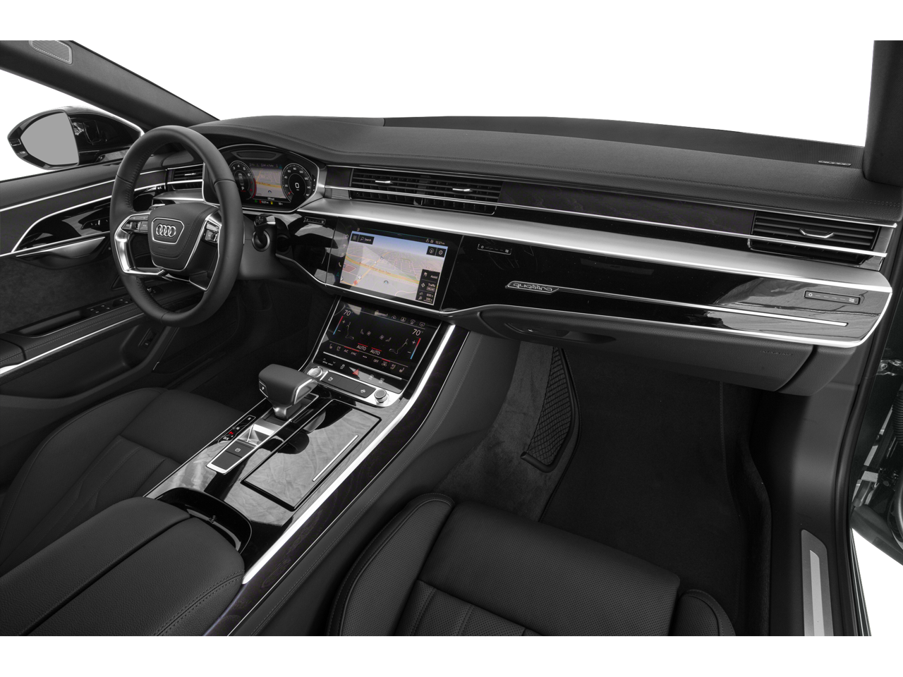 2021 Audi A8 L 55 quattro quattro 8-Speed Automatic with Tiptronic 3.0L V6 Turbocharged DOHC 24V LEV3-ULEV70 335hp Black Leather, 17 Speakers, 22-Way Heated Multi-Contour Comfort Front Seats, 4-Wheel Disc Brakes, ABS brakes, Acoustic & Break Resistant Dual-Pane Side Windows, Adaptive suspension, Air Conditioning, Alloy wheels, AM/FM radio: SiriusXM, Audi Active Lane Assist, Audi Adaptive Cruise Assist, Audi Black Rings & Badges Kit, Audi Dynamic All-Wheel-Steering, Audi Guard Protection Kit, Audi Side Assist, Audi smartphone interface (Apple CarPlay/Android Auto), Auto High-beam Headlights, Auto tilt-away steering wheel, Auto-dimming door mirrors, Auto-dimming Rear-View mirror, Auto-leveling suspension, Automatic temperature control, Black Cloth Headliner, Black Optic Exterior Package, Brake assist, Bumpers: body-color, Compass, Contour/Ambient LED Interior Lighting Package, Delay-off headlights, Door auto-latch, Driver door bin, Driver vanity mirror, Dual front impact airbags, Dual front side impact airbags, Electronic Stability Control, Emergency communication system, Executive Plus Package, Four wheel independent suspension, Front anti-roll bar, Front Bucket Seats, Front Center Armrest w/Storage, Front dual zone A/C, Front fog lights, Front reading lights, Front Seat Massage Function, Garage door transmitter: HomeLink, Genuine wood console insert, Head restraints memory, Head-Up Display, Headlight cleaning, Heated 4-Spoke Multifunction Steering Wheel, Heated door mirrors, Heated front seats, Heated Front Surfaces, Heated Rear Outboard Seats, HVAC memory, Illuminated entry, Intersection Assist, Knee airbag, Leather Shift Knob, Leather steering wheel, Low tire pressure warning, Memory seat, Natural Wood Gray-Brown Fine Grain Ash Inlays, Navigation system: MMI Navigation plus, Occupant sensing airbag, Outside temperature display, Overhead airbag, Overhead console, Panic alarm, Passenger door bin, Passenger vanity mirror, Power 2nd-Row Moonroof, Power adjustable front head restraints, Power door mirrors, Power driver seat, Power moonroof, Power passenger seat, Power steering, Power windows, Radio data system, Radio: MMI Navigation Plus, Rain sensing wipers, Rear air conditioning, Rear anti-roll bar, Rear dual zone A/C, Rear fog lights, Rear Matrix LED Reading Lights, Rear reading lights, Rear seat center armrest, Rear Seat Remote Control, Rear side impact airbag, Rear Window Blind, Rear window defroster, Remote keyless entry, S Line Plus Package, S-Line Exterior Package, Seatbelt memory, Security system, Speed control, Speed-sensing steering, Speed-Sensitive Wipers, Steering wheel memory, Steering wheel mounted audio controls, Tachometer, Telescoping steering wheel, Tilt steering wheel, Traction control, Traffic Sign Recognition, Trip computer, Turn signal indicator mirrors, Valetta Leather Seat Upholstery, Variably intermittent wipers, Ventilated front seats, Wheels: 19 15-Spoke Design, Wheels: 20 20-Spoke-Structure-Design, Wheels: 20 Audi Sport 5-V-Spoke-Star-Design, Wheels: 21 10-Y-Spoke-Evo-Design, Black Leather.