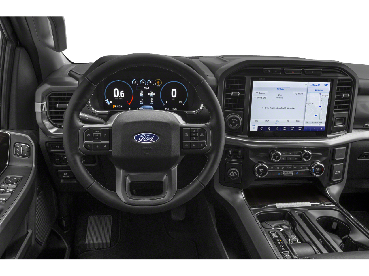 360 Degree Camera, 6 Chrome Running Board, Adjustable pedals, Air Conditioning, Auto High-beam Headlights, Automatic temperature control, Chrome 2-Bar Grille w/4 Minor Bars, Chrome Door & Tailgate Handles w/Body-Color Bezel, Chrome Single-Tip Exhaust, Chrome Skull Caps on Exterior Mirrors, Class IV Trailer Hitch Receiver, Connected Built-In Navigation, Delay-off headlights, Equipment Group 501A Mid, Evasive Steering Assist, Extended Range 36 Gallon Fuel Tank, Exterior Parking Camera Rear, Ford Co-Pilot360 Assist 2.0, Front dual zone A/C, Front fog lights, Fully automatic headlights, Heated front seats, Illuminated entry, Integrated Trailer Brake Controller, Intelligent Adaptive Cruise Control w/Stop & Go, Intersection Assist, Lariat Chrome Appearance Package, Leather-Trimmed 40/20/40 Front Seat, Max Trailer Tow Package, Memory seat, Onboard 400W Outlet, Onboard Scale w/Smart Hitch, Pedal memory, Power door mirrors, Power driver seat, Power passenger seat, Power steering, Power Tailgate, Power windows, Pro Trailer Backup Assist, Radio: AM/FM SiriusXM w/360L, Radio: B&O Sound System by Bang & Olufsen, Rear step bumper, Rear window defroster, Remote keyless entry, Speed Sign Recognition, Split folding rear seat, Steering wheel mounted audio controls, SYNC 4 w/Enhanced Voice Recognition, Tough Bed Spray-In Bedliner, Turn signal indicator mirrors, Twin Panel Moonroof, Universal Garage Door Opener, Ventilated front seats, Wheels: 18 Chrome-Like PVD.