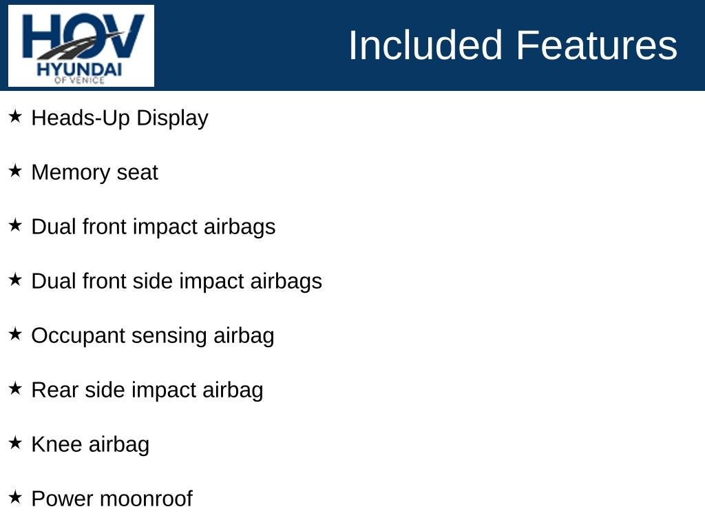 All pricing assumes dealer arranged financing on approved credit. Retired Loaner Vehicle pricing may include all factory rebates and incentives.. Hyundai of Venice Platinum Protection Plan of $1,295 and $995 CPO Inspection charge (CPO Units only) is not included. Hyundai of Venice also offers various programs periodically, which are mutually exclusive and cannot be combined with other offers. A Dealer Fee of $1299.00, Electronic Titling Fee of $599.95, Private Tag Agency fee of $298.00, and applicable taxes, tags, and government fees are not included in the listed prices. While we strive to represent each vehicle accurately, including color, equipment, and options, we recommend verifying all details before purchase, as we are not liable for errors or omissions. To receive any advertised pricing or specials, a copy of the advertisement must be presented at the time of purchase. All prices are for immediate sale and vehicles are sold first come first served. We do not accept deposits to hold used vehicles.