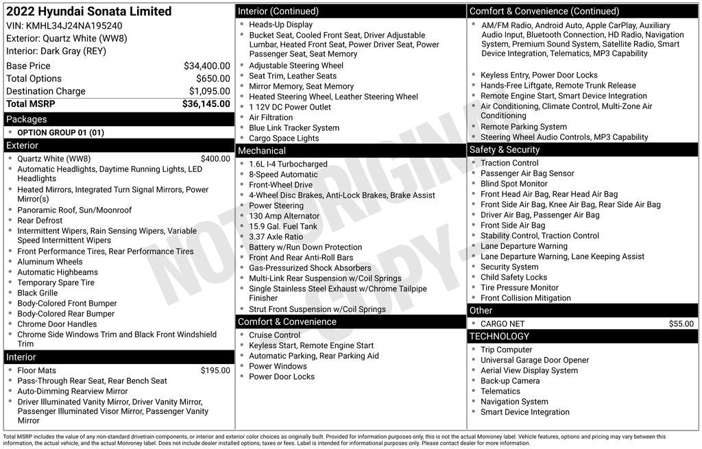 - Vehicle Name: Hyundai Sonata