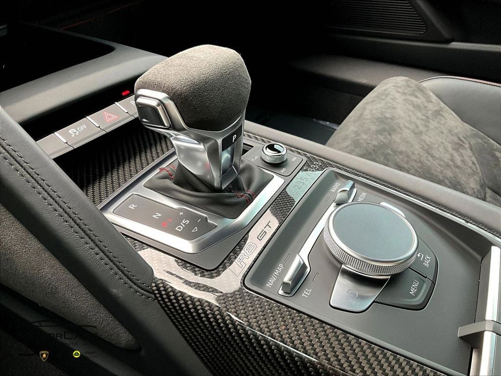 We are pleased to offer this 2023 Audi R8 Coupe V10 GT RWD finished in Daytona Gray Pearl over Black Leather/Dinamica with Red Stitching. This example represents the final evolution of Audis naturally aspirated V10 platform, combining rear-wheel drive purity with lightweight GT-focused enhancements and aggressive styling. Features include:
