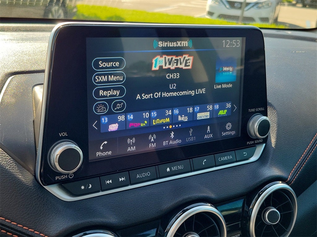 - Radio: AM/FM w/RDS/MP3/Aux-In -inc: 6 speakers plus 2 tweeters in A-pillar, 8" color display w/multi-touch control, streaming audio via Bluetooth®, Bluetooth® hands-free phone system, hands-free text messaging assistant, Siri eyes free, Google Assistant voice recognition w/Apple CarPlay and Android Auto, NissanConnect, (1) front USB connection port (type A), (1) additional front USB (type C) and (1) charge-only USB (type A) center console and SiriusXM radio w/advanced audio features