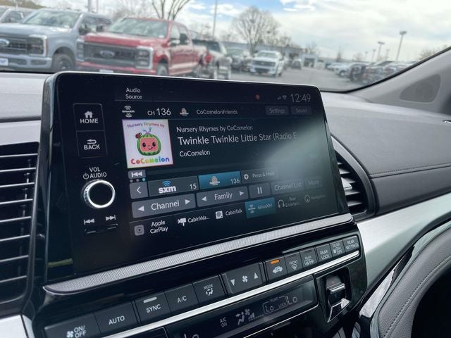 - Radio: 160-Watt AM/FM/HD/SiriusXM Audio System -inc: 7 speakers including subwoofer, 9" color touchscreen display, 7" TFT Meter, multi-zone audio, Bluetooth HandsFreeLink, Bluetooth streaming audio, HondaLink, HondaLink subscription services, Speed-Sensitive Volume Compensation (SVC), Radio Data System (RDS), wireless Apple CarPlay compatibility, wireless Android Auto compatibility, Wi-Fi Hotspot capability, 2.5-amp USB smartphone/audio interface, CabinTalk in-car PA system, advanced rear entertainment system w/12.8" high-resolution screen, HDMI interface w/USB-A, headphone jack (3rd row), Honda Satellite-Linked Navigation System w/voice recognition and Honda HD digital traffic, CabinWatch rear seat monitor, illuminated steering wheel-mounted controls and fin-type roof-mounted antenna, All SiriusXM services require a subscription, sold separately by SiriusXM after the trial period, If you decide to continue service, the plan you choose will automatically renew at the then-current rates, Fees and taxes apply, See the SiriusXM customer agreement and privacy policy at www.siriusxm.com for full terms and how to cancel, which includes calling 1-866-635-2349, Available in the 48 contiguous U.S, and D.C, Some services and features are subject to device capabilities and location restrictions, All fees, content and features are subject to change, SiriusXM, Pandora and all related logos are trademarks of Sirius XM Radio Inc, and its respective subsidiaries