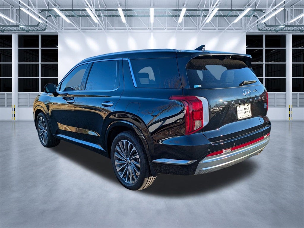 2025 Hyundai Palisade Calligraphy FWD 8-Speed Automatic with SHIFTRONIC V6 12 Speakers, 3rd row seats: split-bench, 4-Wheel Disc Brakes, ABS brakes, Air Conditioning, Alloy wheels, AM/FM radio: SiriusXM, Apple CarPlay & Android Auto, Auto High-beam Headlights, Auto-dimming door mirrors, Auto-dimming Rear-View mirror, Auto-leveling suspension, Automatic temperature control, Brake assist, Bumpers: body-color, Cargo Net, Cargo Tray, Carpeted Floor Mats, Compass, Delay-off headlights, Driver door bin, Driver vanity mirror, Dual front impact airbags, Dual front side impact airbags, Electronic Stability Control, Emergency communication system, Exterior Parking Camera Rear, First Aid Kit, Four wheel independent suspension, Front anti-roll bar, Front Bucket Seats, Front Center Armrest, Front dual zone A/C, Front reading lights, Fully automatic headlights, Garage door transmitter: HomeLink, harman/kardon® Speakers, Heads-Up Display, Heated & Ventilated Front Bucket Seats, Heated door mirrors, Heated front seats, Heated rear seats, Heated steering wheel, Illuminated entry, Knee airbag, Leather steering wheel, Low tire pressure warning, Memory seat, Mudguards, Navigation System, Occupant sensing airbag, Option Group 01, Outside temperature display, Overhead airbag, Overhead console, Panic alarm, Passenger door bin, Passenger vanity mirror, Power door mirrors, Power driver seat, Power Liftgate, Power moonroof, Power passenger seat, Power steering, Power windows, Premium Nappa Leather Seat Trim, Radio data system, Radio: AM/FM/MP3 Premium Audio System, Rain sensing wipers, Rear air conditioning, Rear anti-roll bar, Rear audio controls, Rear reading lights, Rear side impact airbag, Rear window defroster, Rear window wiper, Reclining 3rd row seat, Remote keyless entry, Roadside Assistance Kit, Security system, Speed control, Speed-sensing steering, Split folding rear seat, Spoiler, Steering wheel mounted audio controls, Tachometer, Telescoping steering wheel, Tilt steering wheel, Traction control, Trip computer, Turn signal indicator mirrors, Variably intermittent wipers, Ventilated front seats, Ventilated rear seats, Wheels: 20 x 7.5J Calligraphy Exclusive Alloy.